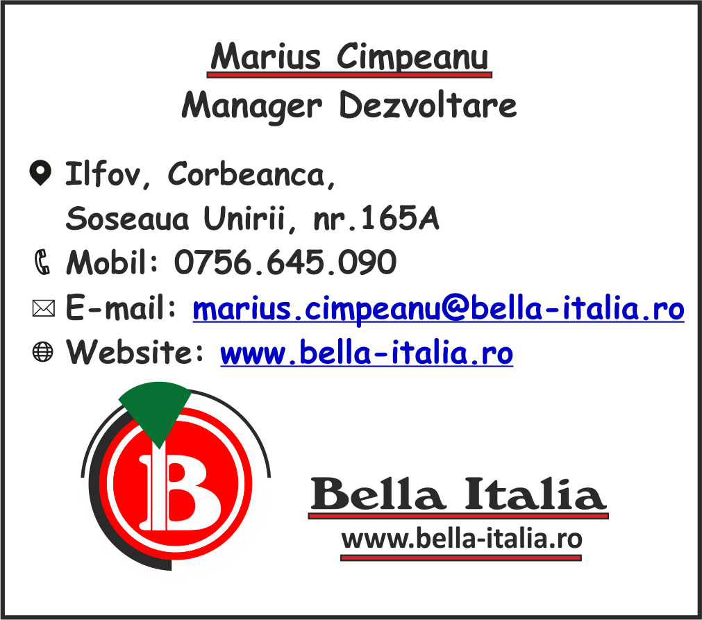 ----- Forwarded Message ----- From: marius.cimpeanu@bella-italia.ro <marius.cimpeanu@bella-italia.ro>To: anca.zamfir1 <anca.zamfir1@yahoo.com>Sent: Monday, July 8, 2024 at 04:54:27 PM GMT+3Subject: Clarificari contract Vespizzatrevi